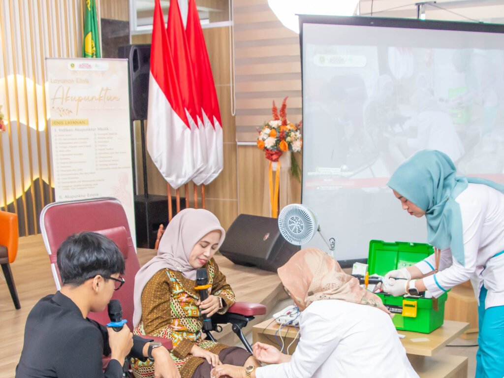 Kegiatan ini menghadirkan dr. Elies Fitriani, M.Biomed, Sp.Ak sebagai narasumber utama. Dalam pemaparannya, dr. Elies menjelaskan prinsip dasar akupunktur medik, mekanisme kerja terapi dalam membantu pengendalian berat badan, manfaat klinis yang dapat diperoleh, serta pentingnya pelaksanaan terapi yang terukur dan sesuai dengan indikasi medis. Peserta juga mendapatkan gambaran mengenai praktik akupunktur dan penilaian komposisi tubuh sebagai bagian dari pendekatan kesehatan holistik.